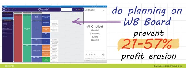 EXPOB focuses on eliminating waste at the source by optimizing core processes. By utilizing various features designed to improve specific project aspects, EXPOB actively reduces both physical and operational waste. Planning on the WB Board and managing tasks as structured processes drastically improves productivity, ensuring team activities on IPP are truly value-added. Furthermore, the HSE & Security considerations integrated into the WB Board encourage team members to manage and minimize site-produced waste proactively.