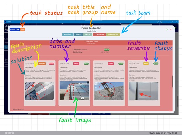 During site inspections, the Controller (CON) can log any detected defects or non-conformities—referred to as a Fault—for any specific Power Task. Once the Controller inputs the fault details, the entire task team is immediately notified, ensuring total transparency and awareness.