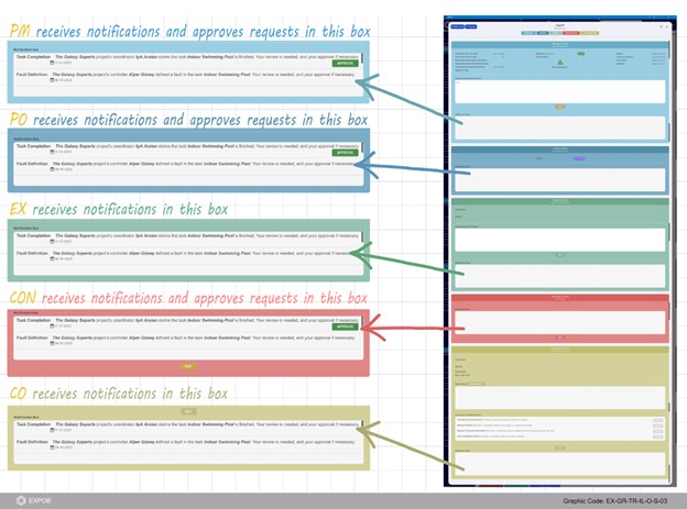 The progress of a task depends on the updates users make within the IPP. The Manager defines the general principles of task execution, while the Expert provides technical information to enable execution by the Coordinator and Doer. The Controller then verifies that the execution remains aligned with the Manager’s principles and the Expert’s technical specifications. Finally, the Project Owner provides the required task approvals directly within the IPP.