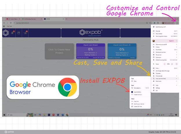 For your convenience, you can save EXPOB to your Desktop, pin the application to your Taskbar, or set it to run automatically when you turn on your computer. For the best experience, we recommend installing the EXPOB app via Microsoft Edge. This unlocks the full power of Flutter, including seamless, simultaneous AI capabilities directly within your workspace.