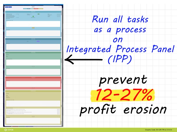 EXPOB minimizes contractual risks by enabling detailed scope preparation on the WB Board before signing any agreement. Additionally, task-based Integrated Process Panels (IPP) allow you to upload complete technical info for every task, making the agreements data-rich and risk-averse. The IPPs enable full task tracking to ensure that the agreement is always under control, and the automated project progress report on Details board (DB) enables real-time agreement tracking.