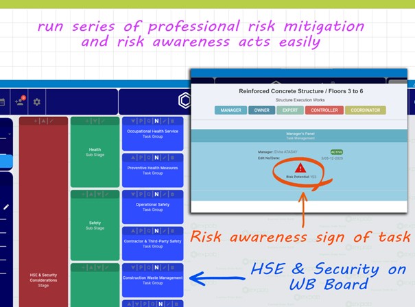 EXPOB provides intuitive Risk Awareness tools to identify threats before they manifest. By marking high-risk tasks directly on the Process Panel, you foster a culture of safety. Integrating HSE & Security procedures into the WB Board ensures that risk mitigation is an inseparable part of your workflow.