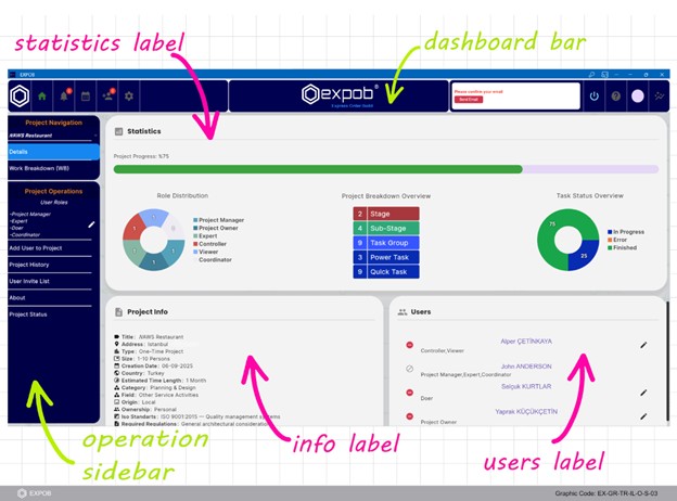 This guide offers a streamlined overview of EXPOB’s core features and essential functions. As you will discover, mastering your projects within the EXPOB environment is remarkably intuitive. For a comprehensive deep-dive, simply register to access our in-app help menu, featuring visualized training content designed to get your entire team fully onboarded in just a few hours.