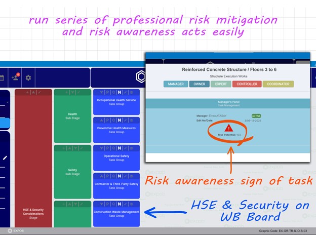 Figure 11- EXPOB streamlines Health, Safety, and Environment (HSE) protocols—traditionally a complex challenge in construction. By embedding risk awareness into well-organized, system-centric features, the platform transforms safety from a manual chore into a seamless routine.
