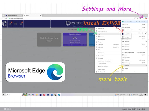 For your convenience, you can save EXPOB to your Desktop, pin the application to your Taskbar, or set it to run automatically when you turn on your computer. For the best experience, we recommend installing the EXPOB app via Microsoft Edge. This unlocks the full power of Flutter, including seamless, simultaneous AI capabilities directly within your workspace.